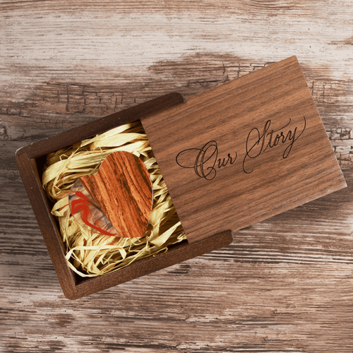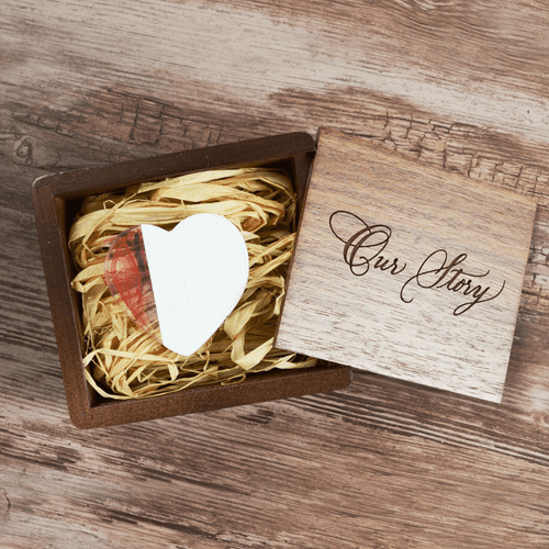 Discover the perfect blend of sentiment and technology with our exquisite 16GB heart-shaped USB 2.0 flash drive. Encased in a luxurious walnut box, meticulously laser-engraved with our exclusive “Our Story” design, this masterpiece is a must-have for artisans, enthusiasts, and thoughtful gift givers alike.