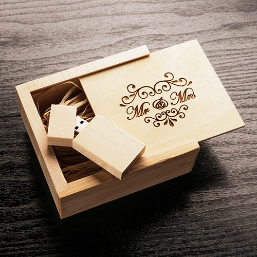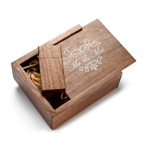 Our classic wedding USB flash drive package is available now! You can choose from a variety of materials and drive sizes. The Mr and Mrs Wedding Gifts Love Box puts a fun and personal touch on photo sharing for newlyweds. Couples will love the to share their day with this personalized drive with their friends and family.